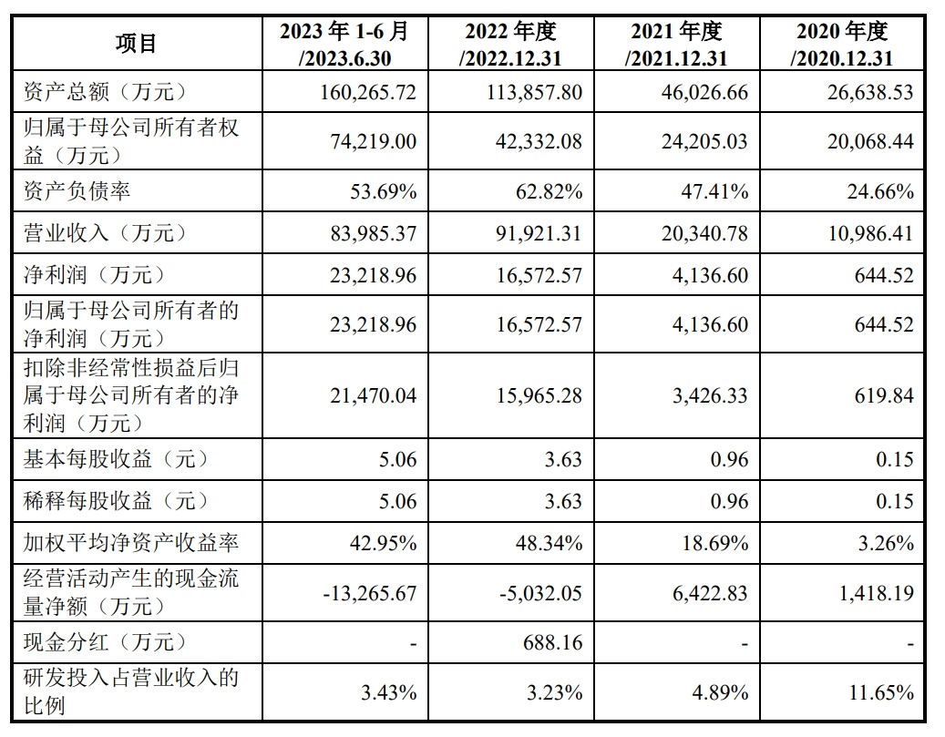 财务方面,于2020年、2021年、2022年度及2023年上半年,金鸿新材实现营业收入分别约为1.10亿元、2.03亿元、9.19亿元及8.40亿元。同期,该公司实现净利润分别约为644.52万元、4136.60万元、1.66亿元及2.32亿元。