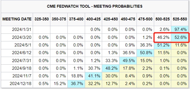 经济学家们的预期则显得更加理性,有机构于1月16日至23日期间对全球范围的经济学家们进行的调查显示,在1月31日的联邦公开市场委员会(FOMC)会议上,所有123位受访经济学家均预测联邦基金利率将维持在5.25%至5.50%。其中,86位受访者中的大多数预计降息将从下一个季度开始,而不是3月份。大约45%的经济学家(55位)预测6月开始降息,31位预测5月,而只有16位认为3月会降息。其余人预测今年下半年将基于通胀继续回落而开始降息。