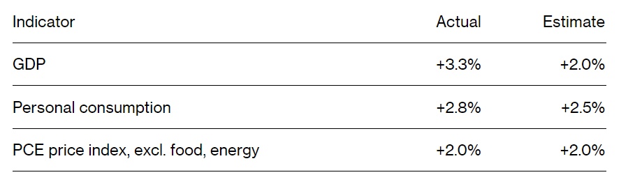 智通财经APP获悉,随着通胀降温推动消费者支出持续增长,美国第四季度经济增速超出几乎所有经济学家预期,为2023年这一出人意料的强劲增长年份画上圆满的句号。根据美国政府周四公布的GDP初步统计数据,美国第四季度国内生产总值(GDP)年化季率为3.3%,超出经济学家普遍预期的2%,Q3 GDP年化季率则高达4.9%。2023年全年,美国经济则增长2.5%,超出2022年实现的1.9%这一GDP增速。