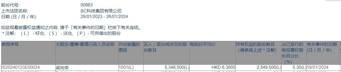 智通财经APP获悉,香港联交所最新资料显示,1月19日,梁向荣增持BC科技集团(00863)534.85万股,每股作价6.3港元,总金额约为3369.56万港元。增持后最新持股数目为254.95万股,最新持股比例为5.30%。