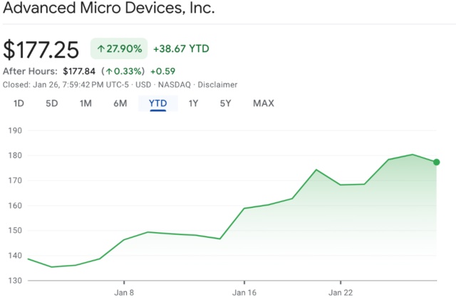 2024年迄今AMD股价已上涨了28%,并不断刷新历史新高,而在2023年,AMD的股价已经上涨了127%。