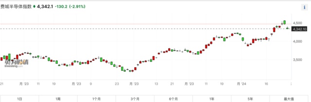 美国费城半导体指数(追踪美国前30大芯片公司)过去12个月上涨超50%,因投资者乐观认为,市场对AI服务的需求将继续飙升,对算力芯片的需求高涨。
