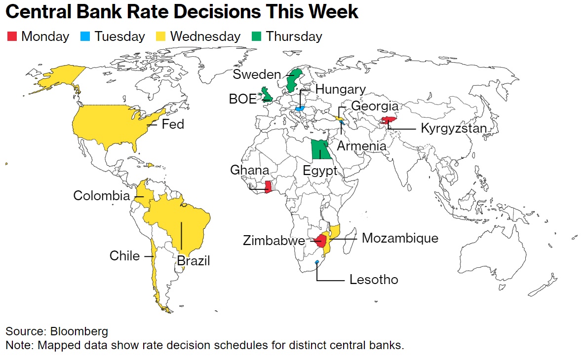 在其他地方,英国和瑞典央行的决定可能会维持利率不变,而三家拉美央行将降息。