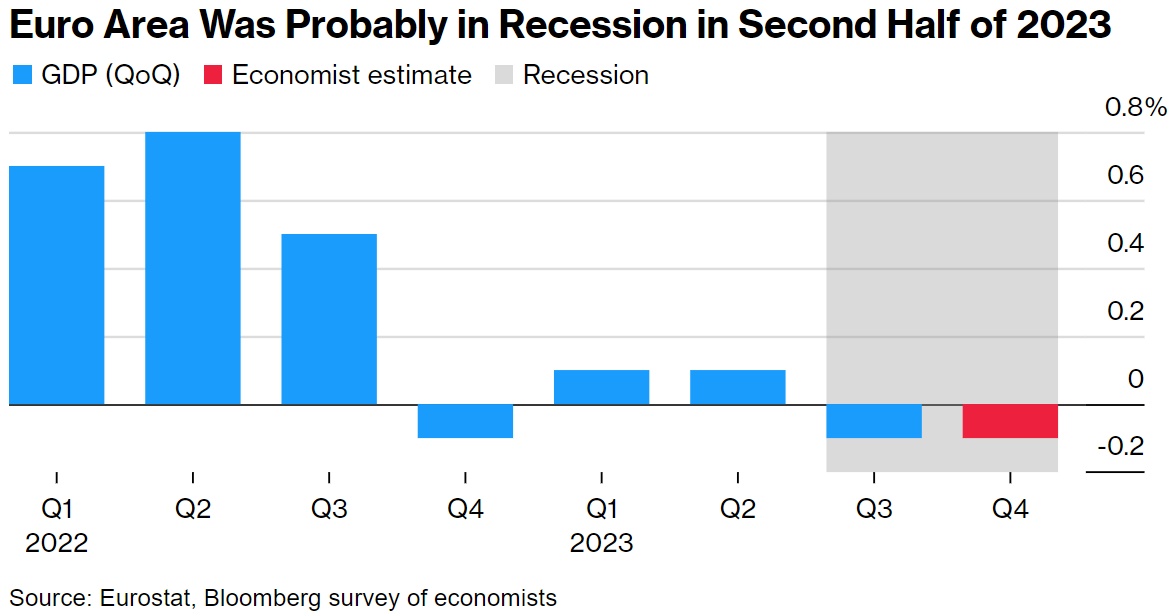 对欧元区而言,经济学家预计其结果将是经济在连续第二个季度收缩0.1%——符合衰退的典型定义。