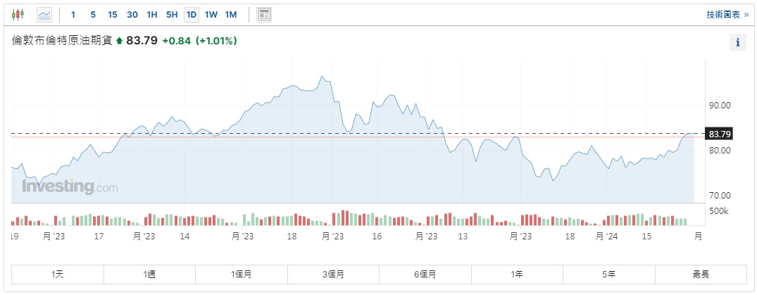 然而,当前油价却仍低于10月7日巴以冲突升级时的水平。截至发稿,WTI原油期货涨0.87%,报78.87美元/桶;布伦特原油期货涨超1%,报83.79美元/桶。