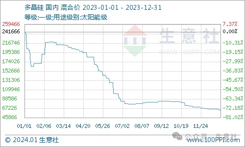 智通财经APP获悉,生意社发文称,转眼2023年渐行渐远,中国光伏行业迎来新一轮发展周期,而行业也暴露出一些问题。一方面是终端需求爆发,装机量持续飙升。但同时上游硅料产能过快扩张也导致了供应过剩,供过于求的矛盾日益激化,导致了上游硅料价格全年持续性的下滑。据生意社商品行情分析系统,单晶硅一级太阳能料全年跌幅在73.66%。