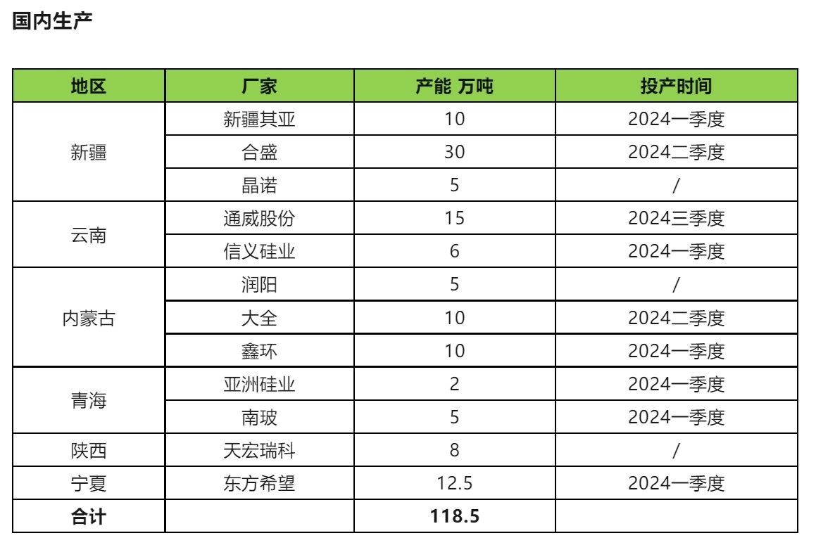 2024年预计多晶硅新增产能118万吨,合计产能超过370万吨,市场会迎来更大面积的供应过剩,考虑到需求增幅有限,到2024年底,中国多晶硅行业开工率可能会下降到50%以下。