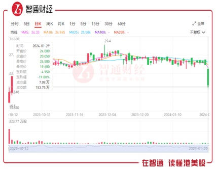 1月29日,十月稻田低开低走,盘中跌幅一度触及21.6%。截至收盘,十月稻田报20.05港元,跌幅为19.8%。