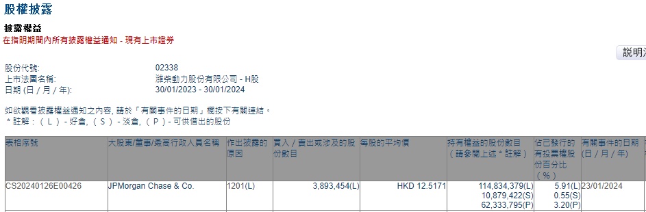智通财经APP获悉,香港联交所最新资料显示,1月23日,小摩减持潍柴动力(02338)389.3454万股,每股作价12.5171港元,总金额约为4873.48万港元。减持后最新持股数目约为1.15亿股,最新持股比例为5.91%。