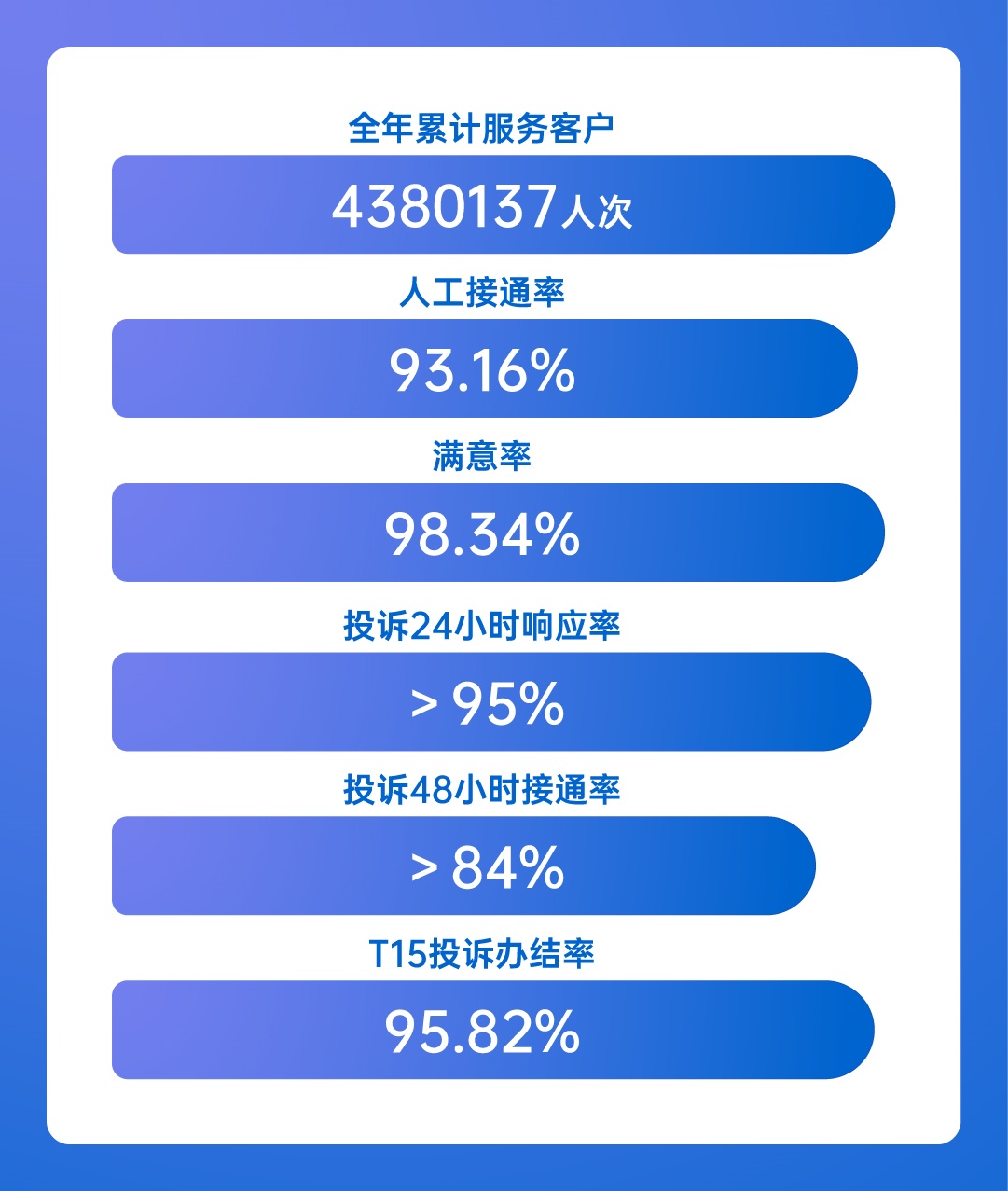 在制度建设方面,嘉银科技进一步强化了消费者保护职能,构建一套更加健全和完善的消费者保护体系。在服务效率方面,嘉银科技通过电话语音、网络在线、智能坐席等多重服务模式,提供全天候、标准化、便捷性的服务保障。2023年嘉银进一步拓宽客服热线展示渠道、实现App在线客服一键接入、加速客服功能大厅建设,全年累计客户服务4380137人次,人工接通率超93.16%,满意率超98.34%。
