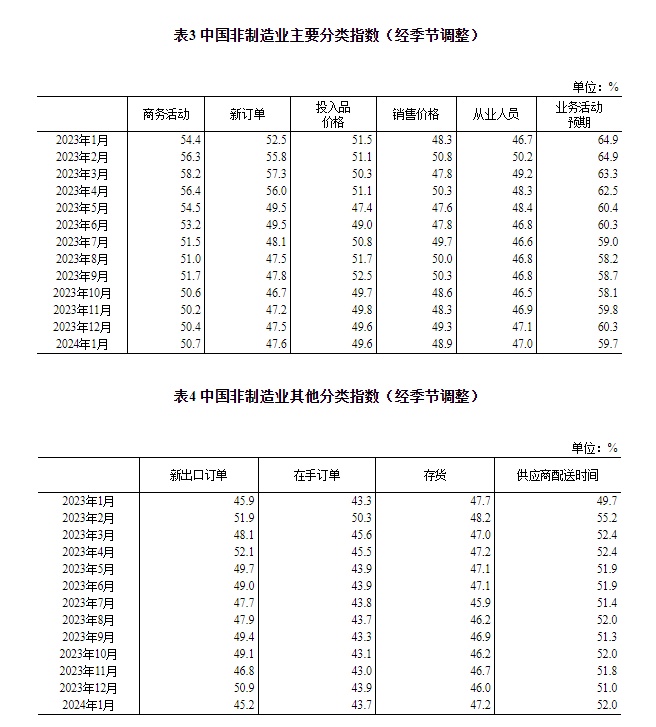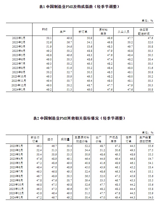 2024年1月中国采购经理指数运行情况