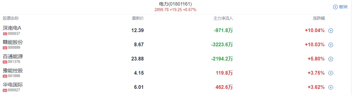 电力板块继续活跃,深南电A晋级3连板,赣能股份盘初迅速拉升涨停,百通能源、豫能控股、华电国际等跟涨。