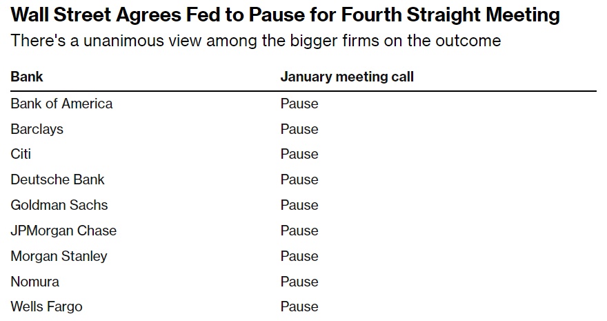 “在1月份的FOMC会议上,美联储官员们的主要关注点将是确定何时以及如何就降息和逐步退出量化紧缩政策与市场进行沟通……如果美联储FOMC确实像我们预期的那样在3月份开始降息,那么最终的沟通可能将来自美联储主席鲍威尔在2月底或3月初的Humphrey-Hawkins 证词。”Bloomberg Economics经济学家Anna Wong和Stuart Paul表示。