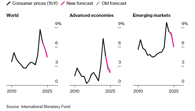同时,IMF的预测假设包括燃料在内的大宗商品价格今年和明年将下降,以及主要经济体的利率将放松。例如,基金会的经济学家预测,美联储、欧洲央行和英国央行将在今年上半年保持利率不变,然后随着通胀放缓逐步下调利率。