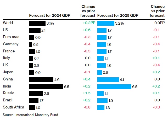 根据该机构周二发布的季度《世界经济展望》报告,今年全球经济将增长3.1%,高于10月份预测的2.9%,但该组织仍将对2025年的预测维持在3.2%不变。
