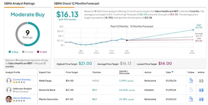 Okusanya继续给予Sabra“买入”评级,并列为其行业首选,目标价为21美元,这表明该股未来一年有55%的上涨潜力。加上股息,这意味着该股未来一年回报率约为64%。