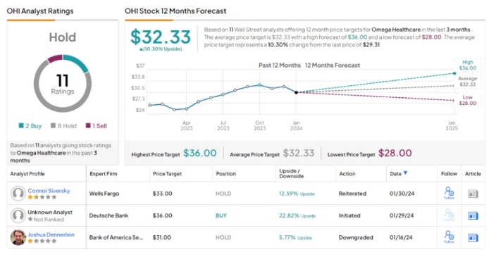 尽管德银持乐观观点,但市场对Omega的情绪更为谨慎,华尔街一致评级为“持有”。平均目标价为32.33美元,意味着未来一年内可能会有约10%的上涨空间。