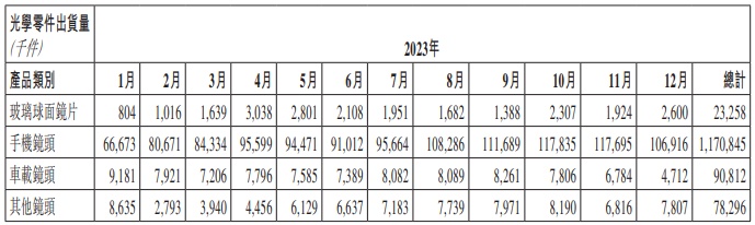 从舜宇光学披露的出货量数据可以看到,公司2023年手机镜头出货量的整体趋势几乎是逐月上升,2023年,舜宇手机镜头出货量11.71亿件,按年跌1.8%;手机摄像模块出货5.67亿件,按年增9.8%,但下半年公司手机模组和手机镜头出货量分别同比增长37%和22%。