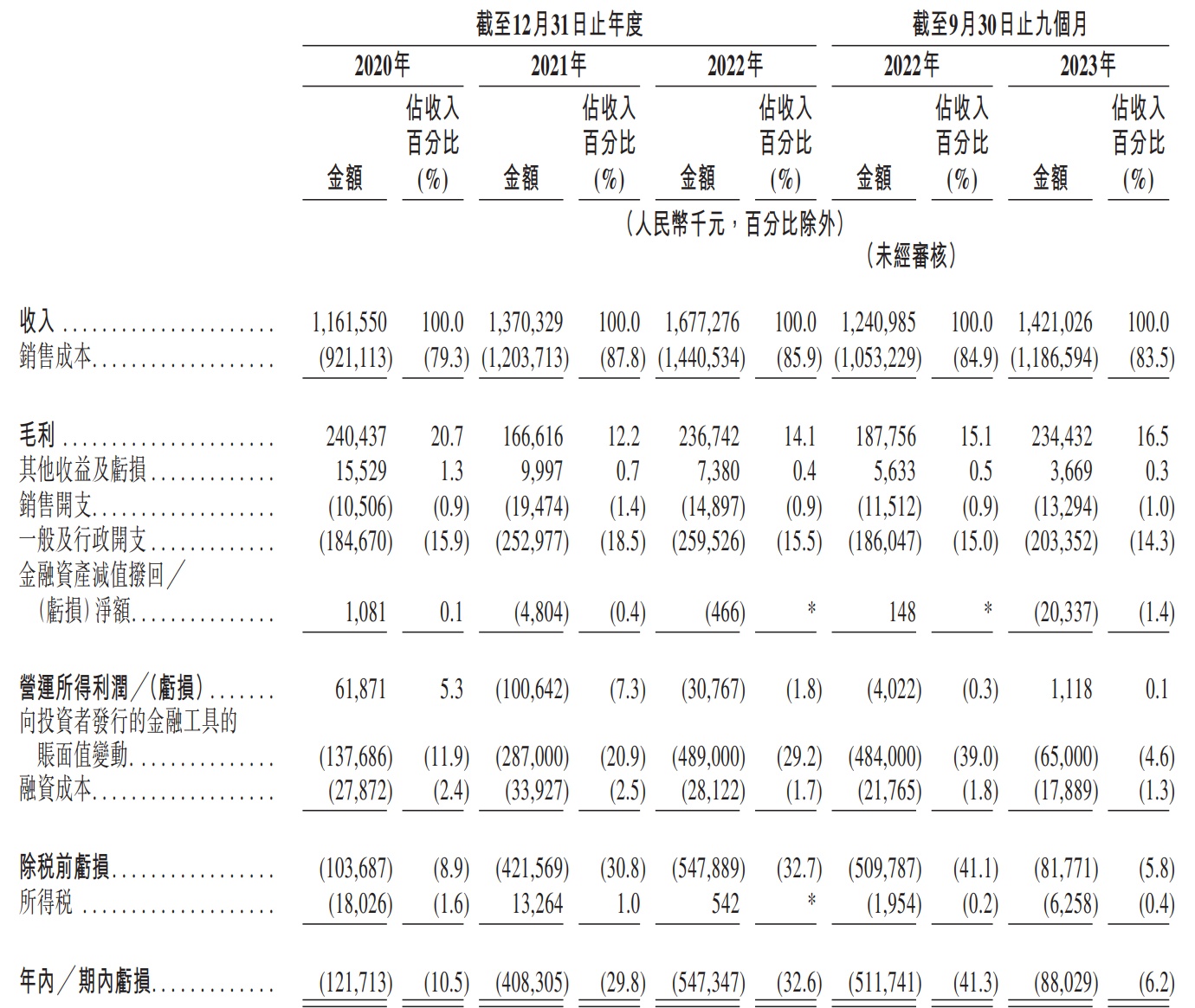 财务方面,于2020年、2021年、2022年以及2023年截至9月30日止9个月,陆道培医疗实现收入分别为约11.62亿元、13.70亿元、16.77亿元以及14.21亿元人民币;同期,实现年内/期内亏损分别为约1.22亿元、4.08亿元、5.47亿元及8802.9万元人民币。