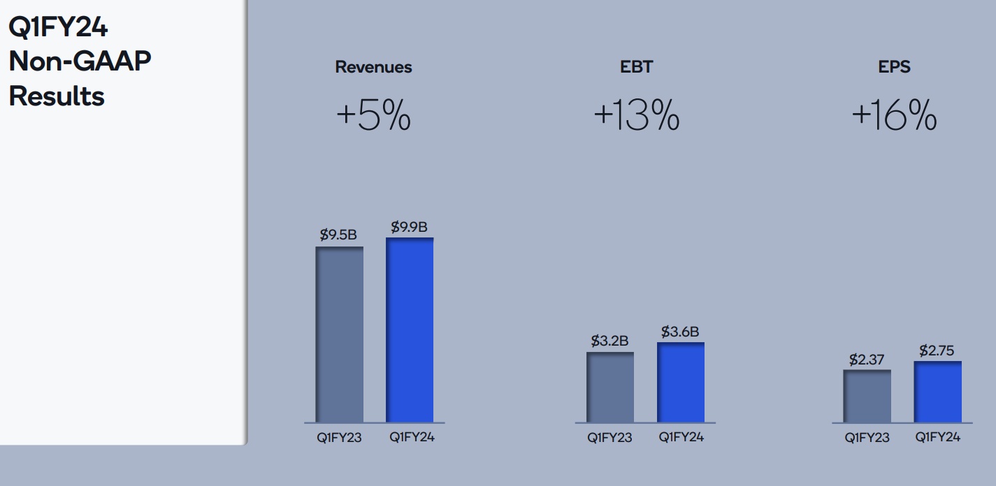 在截至12月24日的第一财季,不计某些项目,高通调整后的每股收益为2.75美元,超过分析师平均预期的2.36美元,上年同期为2.37美元。在智能手机市场复苏提振之下,高通Q1总营收实现同比增长5%,至99亿美元,超过分析师平均预期的为95.4亿美元。