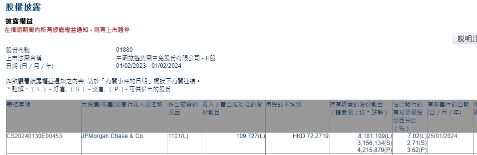 智通财经APP获悉,香港联交所最新资料显示,1月25日,小摩增持中国中免(01880)10.9727万股,每股作价72.2719港元,总金额约为793.02万港元。增持后最新持股数目约为818.11万股,最新持股比例为7.02%。
