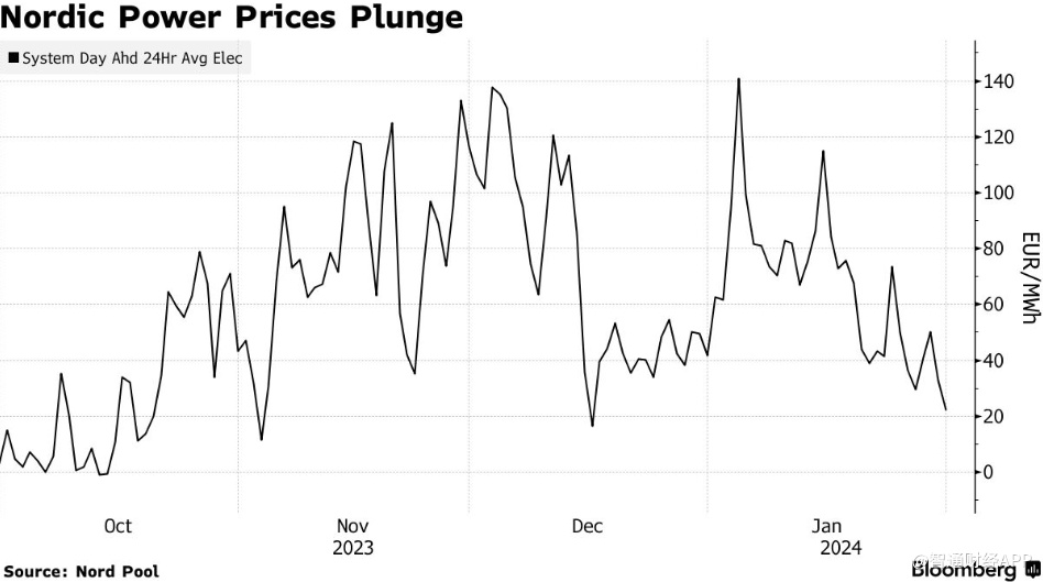 北欧电力价格暴跌