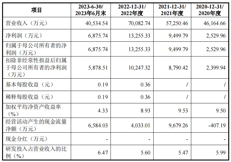 财务方面,于2020年度、2021年度、2022年度、以及截至2023年6月30日,金天钛业实现营业收入分别为约4.62亿元、5.73亿元、7.01亿元、4.05亿元人民币;同期,公司实现净利润分别为2529.96万元、9499.79万元、约1.33亿元、6875.74万元人民币。