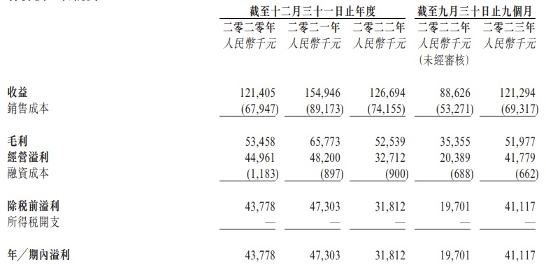 与此同时,富景中国也较为依赖分销商与前五大客户。招股书显示,于2020财年、2021财年、2022财年以及2023年首九个月,富景中国分销商的销售额分别为1.21亿元、1.55亿元、1.27亿元和1.21亿元,占公司同期营收的99.7%、100%、100%和100%。此外,上述期内,来自五大客户的总收益占公司各年度营收分别为56.1%、66.3%、67.3%及68.1%。