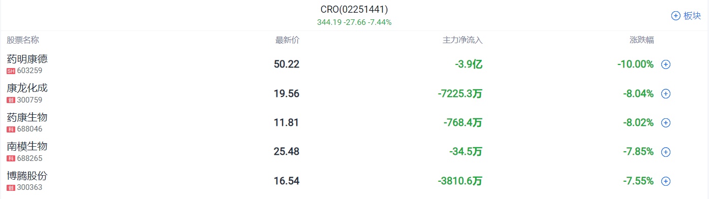 CRO板块午后跳水,药明康德闪崩跌停,康龙化成、泰格医药、美迪西、昭衍新药等大幅跟跌。此外港股药明系个股集体大跌,药明康德H股一度跌超25%,药明生物一度大跌22%。