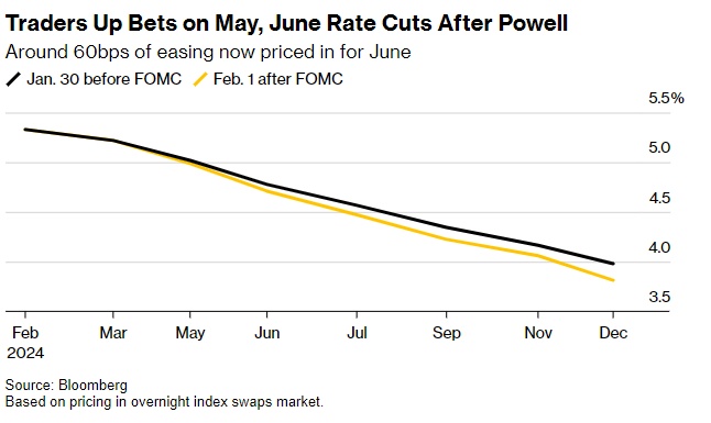 在鲍威尔表态后,交易员加大对5、6月降息的押注