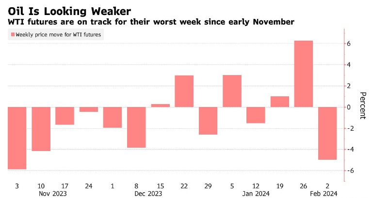 此外,虽然欧佩克(OPEC)执行新减产协议的力度并不像总体数据变化所显示的那么大。石油市场依然脆弱,布伦特原油价格维持在每桶80美元附近,尽管中东冲突肆虐,红海航运受到攻击。国际油价比哈马斯在去年10月7日对以色列发动袭击时还要低。