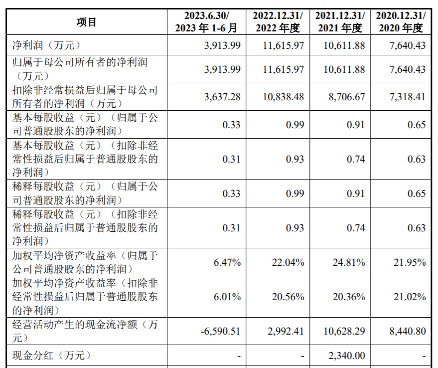 财务方面,于2020年、2021年、2022年及2023年上半年,信通电子实现营业收入分别约为4.65亿元、6.15亿元、7.80亿元及3.63亿元。同期,该公司实现净利润分别约为7640.43万元、1.06亿元、1.16亿元及3913.99万元。