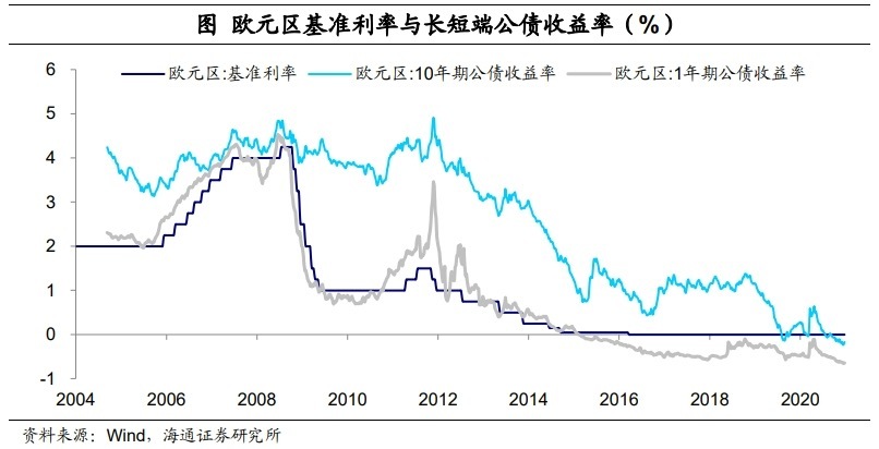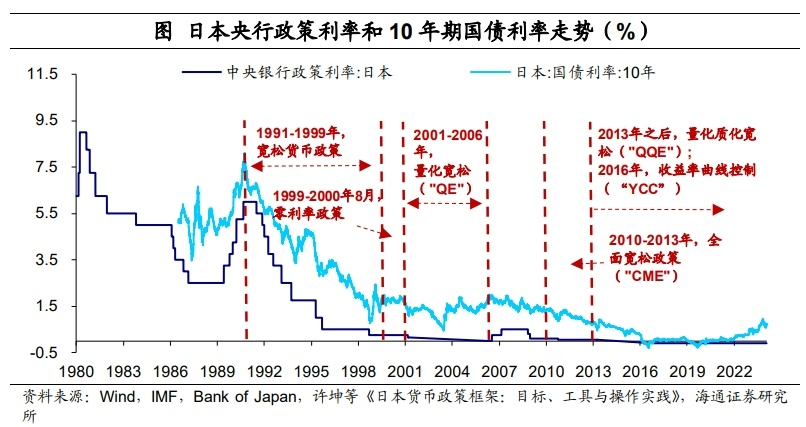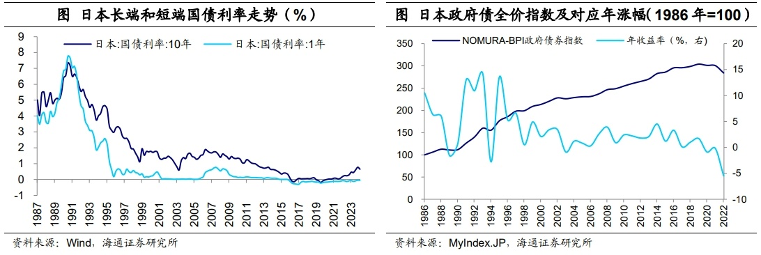 参考日本,1991年日央行启动连续降息,1年期国债利率迅速回落,从9月的6.6%到1995年12月降至0.17%,此前持续超两年的长短端利率“倒挂”结束;10年国债利率到1998年底也降至1.1%。1999年,日央行进入零利率时代以后,长短端利率持续低位波动,收益率曲线长期呈现平坦化趋势。