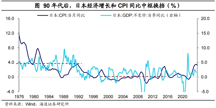 从债券资产收益看,90年代利率快速下行期,债券的配置吸引力明显抬升,NOMURA-BPI政府债全价指数年化涨幅可以达到7.7%(1991-1998年)。而进入零利率时代以后,全价指数上行速度放缓,平均涨幅也回落至2%左右。