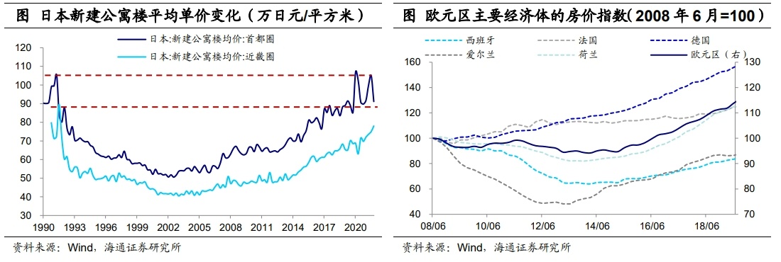 如果是刚经历过泡沫破裂期的房地产市场,后续修复速度就会显著偏慢。比如1990年后的日本、还有2008年以后爱尔兰、西班牙等地的房地产市场。日本首都圈的新房价格在下跌最快的时候,两年间跌去64%(1991.05-1993.05);而后到2002年才触底企稳,一直到2022年才回到此前高点。爱尔兰、西班牙房价在前5年分别跌去52%和36%(2008.06-2013.06),到2020年疫情前都没能恢复到2008年水平。