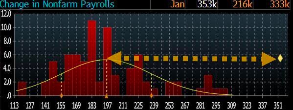 2月2日周五,1月非农就业数据意外“爆表”,非农就业人口增加35.3万人,高出所有分析师的预期,是普遍预期的18.5万人的两倍,12月的就业人数从此前的21.6万人上修至33.3万人。