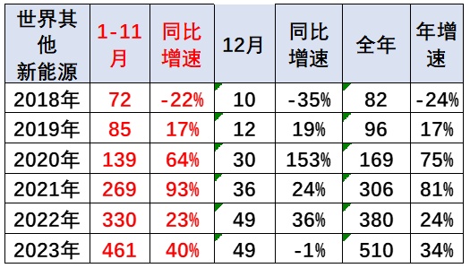 中国之外市场的新能源走势较平稳,而且去年的基数较低,有利于增长。12月的海外新能源增长偏低。