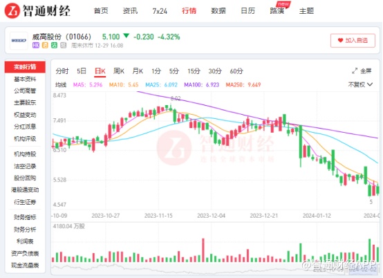 一则业绩盈警让威高股份(01066)的市场前景再度蒙上阴影。根据公告,公司2023年营收预计将下滑2%至5%,归母净利润则同比下跌25%至30%。业绩预告一出,公司股价闻声下跌,创下5港元的历史新低。从年初最高点14.19港元至今,全年最大跌幅已超6成。