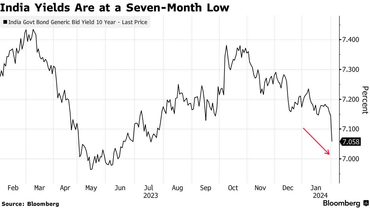 受此影响,印度国债收益率跌至7个月以来低点。交易员表示,这加强了印度央行在2月8日或下次政策会议上从退出宽松政策转向中性立场的理由。