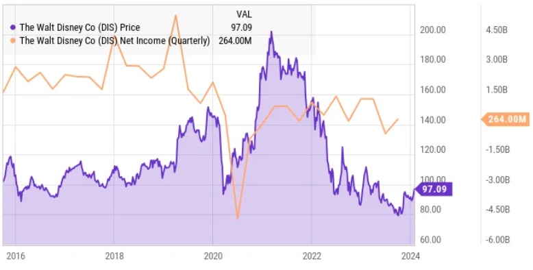 因此,即使迪士尼的盈利能力恢复到疫情前的水平,年营业利润约为150亿美元,其股价看起来仍不够便宜,不足以支撑大幅上涨。但如果投资者有耐心,随着管理层偿还债务,减少利息支出,并改善流媒体业务的经济状况,股价应该会走高。