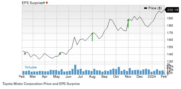 根据研究机构Zacks数据显示,丰田在过去四个季度的实际每股收益都超过了其分析师的共识预期,平均超出预期的幅度达到了46.86%。