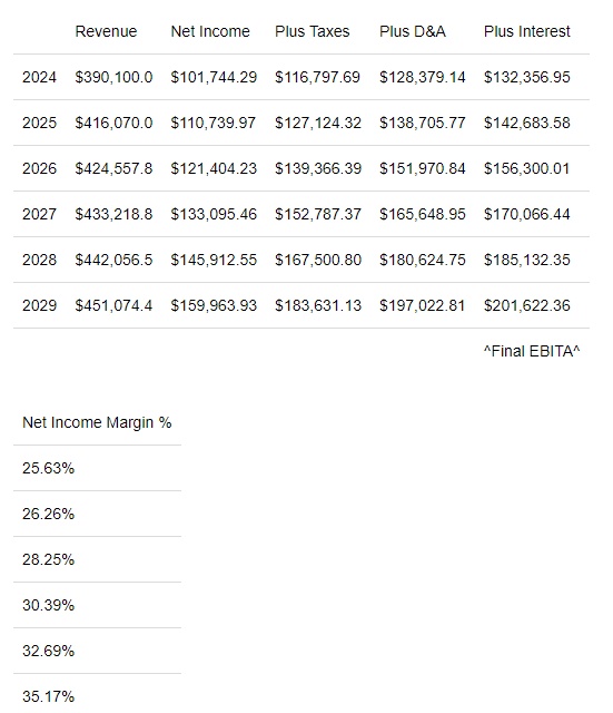 营收预期则没有反映出如此高的增长率。整个2028年,营收预计将以中个位数的速度增长,唯一的例外是2027年,预计营收将增长8.34%。