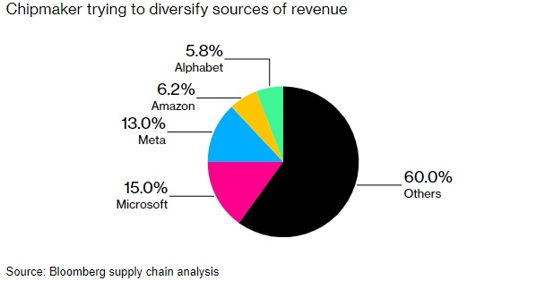 这一所谓的超大规模运营商群体代表了英伟达潜在的收入风险集中。尽管对该公司芯片的需求仍然旺盛,但这些客户最终可能会使用更多自己的技术。他们都在开发自己的芯片,或者已经以某种方式开始采用它们。