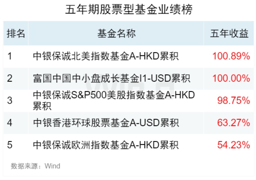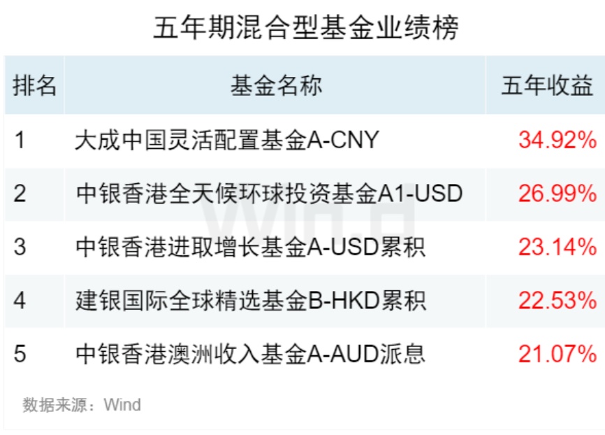 (2)五年期、三年期和一年期大中华混合型基金业绩榜因满足入榜要求的基金数目不足,不满足发榜条件。其中:
