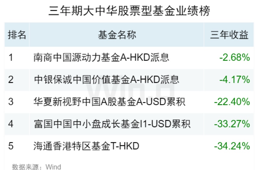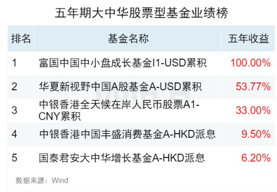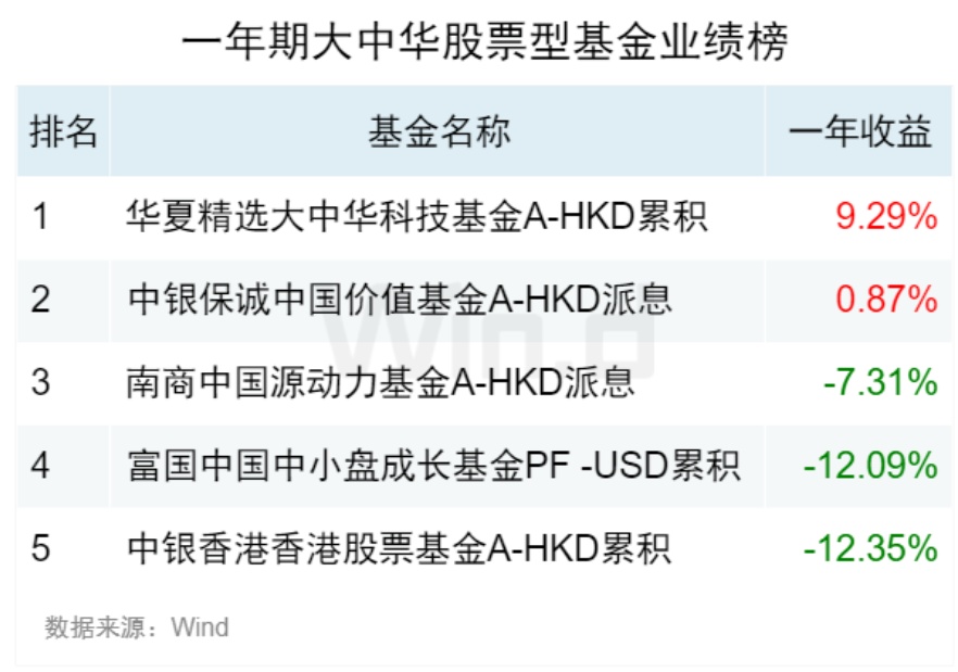 大中华股票型基金业绩榜