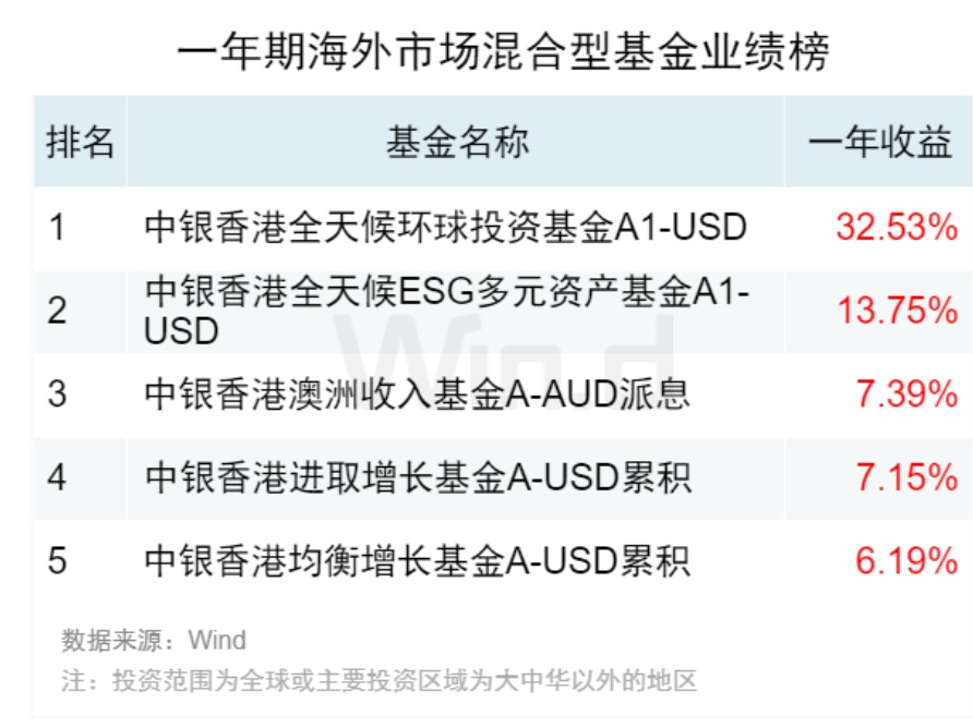 海外市场混合型基金业绩榜