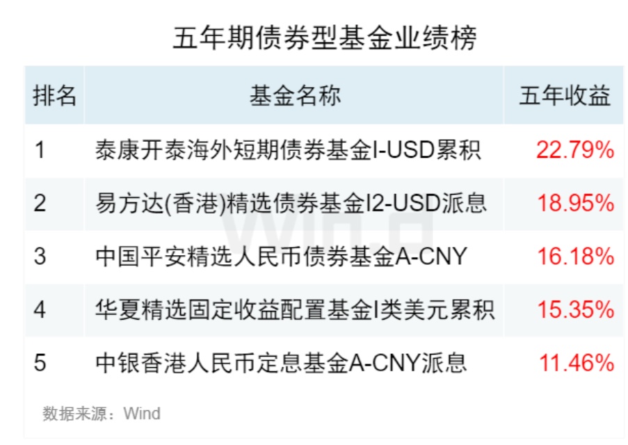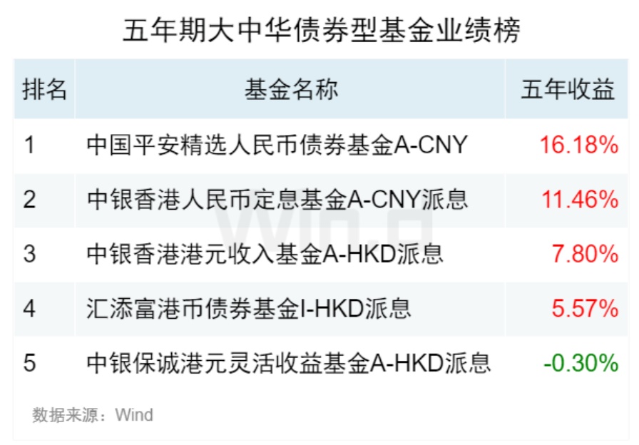 19五年期大中华债券型基金业绩榜