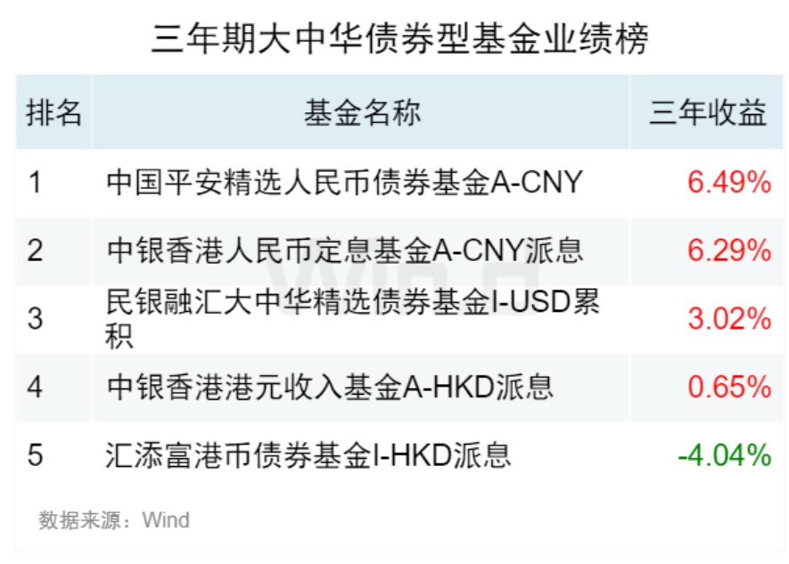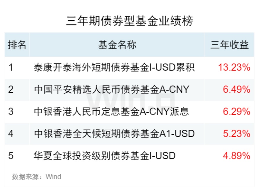 20三年期大中华债券型基金业绩榜