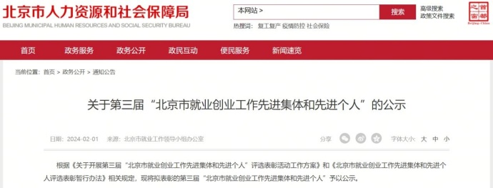 “北京市就业创业工作先进集体和先进个人”评选工作由北京市社会保障和就业工作领导小组办公室、北京市工商联合会、北京市人力资源和社会保障局、北京市总工会联合发起,每三年评选一次,需经过严格的选拔、评审和公示,是北京市就业创业工作评选表彰的最高荣誉。该评选旨在表彰在北京市就业创业工作中作出突出贡献的集体和个人,从而调动全社会关心、支持就业创业工作的积极性。