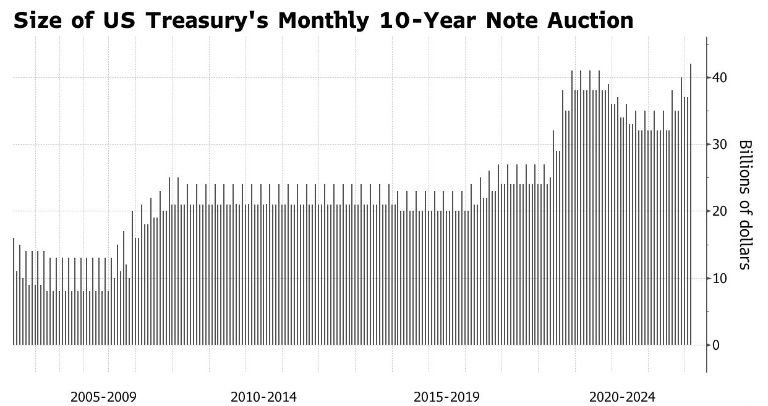 此次10年期美国国债的销售规模为420亿美元,超过了2020年11月达到的410亿美元的最高水平。随着上周公布的美国公债标售规模的最新变化,包括2年期和5年期在内的七项国库券和债券中,有三项计划在2月至4月当季触及创纪录规模。